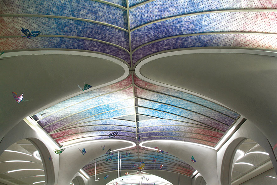 異型天花板產(chǎn)品是指不采用標準成型模具、產(chǎn)品不具有成型后的標準外形幾何尺す,通常采用剪板機、折機、曹弧機等設(shè)備把面板加工成弧形板、折角板、梯形板等各種形狀的異型產(chǎn)品。非標準板吊頂系統(tǒng)突破常規(guī)標準吊頁造型的念,設(shè)計獨特創(chuàng)新,造型富有想象力,可滿足特殊用途的建筑部位設(shè)計需要。無論應(yīng)用于何處,產(chǎn)品簡潔大氣的塊面,變幻豐富的造型,絢編紛的色彩和爍爍生輝的質(zhì)感均帶給每位設(shè)計師和業(yè)主實現(xiàn)理想的自豪感和獨具一格的建筑特色。異型板吊頂系統(tǒng)是根據(jù)客戶需求而特別定制的異型產(chǎn)品,應(yīng)用于對某些設(shè)計和功能方面有特殊需求的建筑領(lǐng)域。