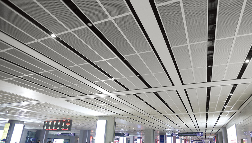 金屬網(wǎng)格天花具有開(kāi)放、透明的視野;是一種可用于多種建筑設(shè)計(jì)視覺(jué)效果獨(dú)特的吊頂系統(tǒng)。在樣式、材質(zhì)和顏色方面有廣泛的選擇,可以確保毎個(gè)項(xiàng)目擁有獨(dú)特的外觀。金屬網(wǎng)格是通過(guò)特殊的制造工藝在金屬薄片表面同時(shí)進(jìn)行切制和拉伸,制作出菱形網(wǎng)孔。通過(guò)網(wǎng)孔形狀、網(wǎng)孔方向以及照明和顏色的變化,可以將吊頂表現(xiàn)得更加通透和富有動(dòng)感。不同的網(wǎng)孔類(lèi)型和材質(zhì),使吊頂設(shè)計(jì)更加富有個(gè)性、更具有時(shí)尚氣息。產(chǎn)品適用于設(shè)備緊多及人流較多的區(qū)域,如地鐵、機(jī)場(chǎng)、車(chē)站、通道現(xiàn)代大型購(gòu)物中心、展覽中心等大型開(kāi)放式公共場(chǎng)所。